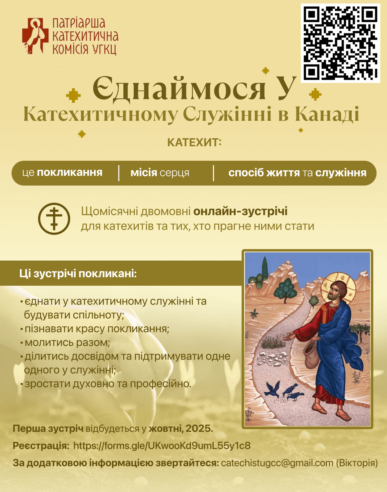 Віримо, що Господь рясно сіє усюди, де є Його діти, та кличе багатьох сповняти «основне діяння Церкви – навчати і виховувати у вірі християнина та провадити його до сопричастя з Ісусом Христом та церковною спільнотою» (Катехизм УГКЦ – Христос Наша Пасха, №54). Перша така зустріч відбудеться у жовтні. Кінцевий термін подання заявок – середина жовтня.
